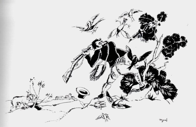 Figura d’un home matant ocells amb la culata de la seva escopeta.