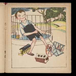 Les Peripècies d’en Joan Barroer, from the “Sis Joans” series, is a story by Carles Riba magnificently illustrated by 14 illustrations by Xavier Nogués, published by Editorial Muntañola, S.A., Barcelona, 1917.