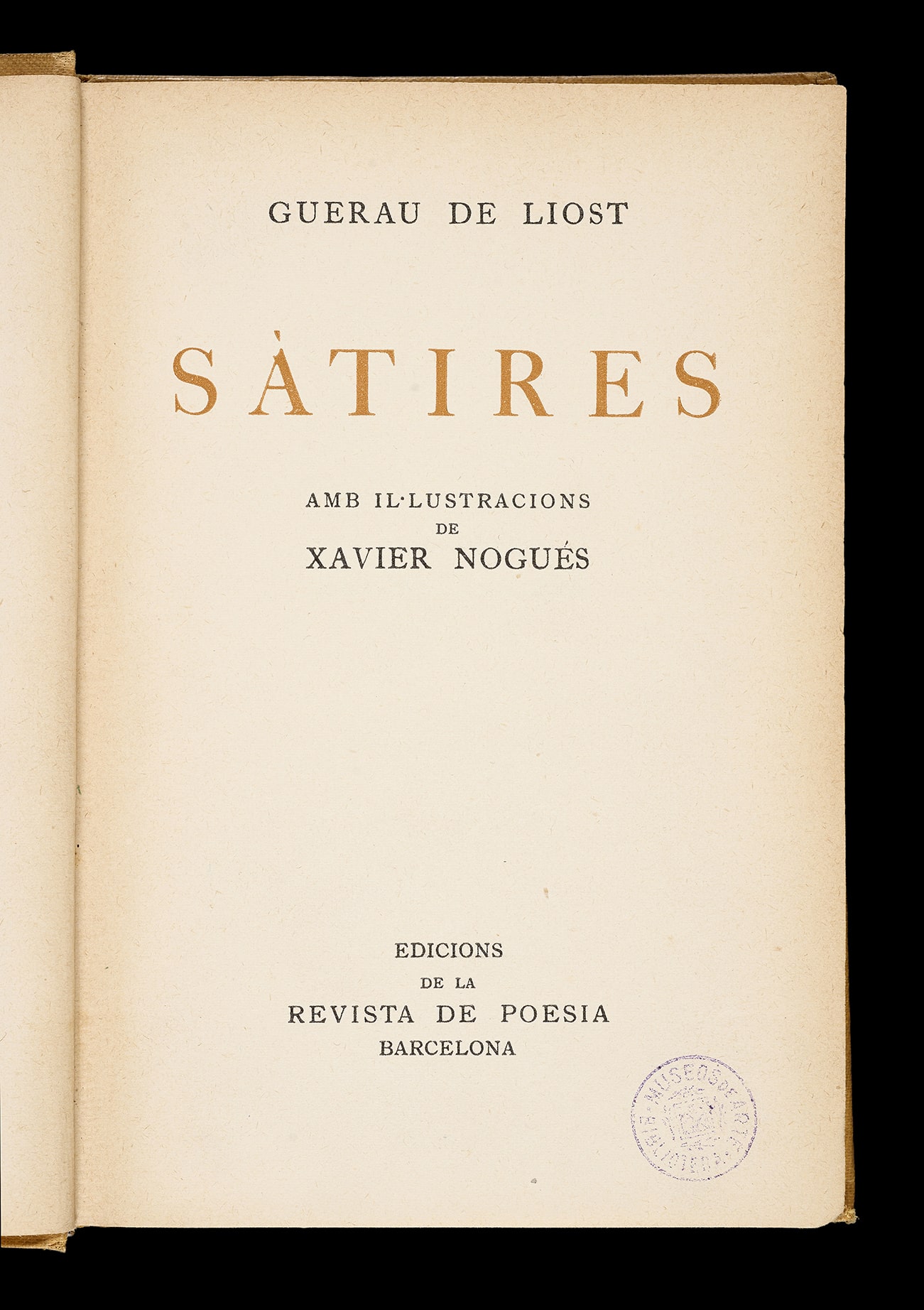 Guerau de Liost (text); Xavier Nogués (illustrations). Barcelona, Edicions de la Revista de Poesia, 1927. 239 pages. An example has also been found at the Barcelona gallery, the Palau Antiguitats. Image rights: Palau Antiguitats.