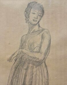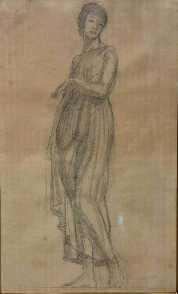 Dibuix de figura femenina, potser estudi per a una pintura mural. Potser es tracta d’un esbós per a la decoració del Saló Plandiura (al Carrer de la Ribera, 6 de Barcelona), pintat entre el 1917-1927. Aquest dibuix va aparèixer en el lot 876 a la subhasta Subarna de Barcelona el 4 de desembre de 2025.