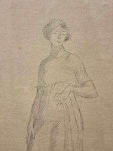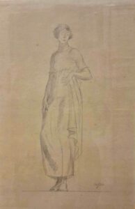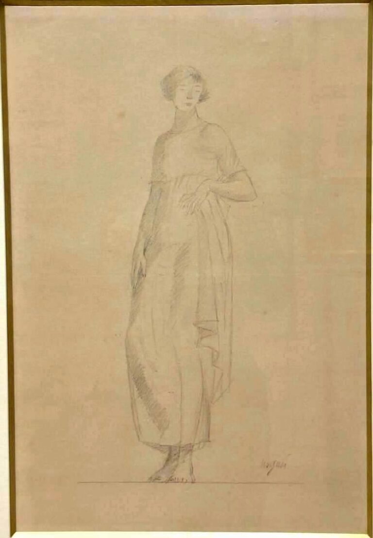 Dibuix de figura femenina, potser estudi per a una pintura mural. Potser es tracta d’un esbós per a la decoració del Saló Plandiura (al Carrer de la Ribera, 6 de Barcelona), pintat entre el 1917-1927. Aquest dibuix va aparèixer en el lot 893 a la subhasta Subarna de Barcelona el 4 de desembre de 2025.