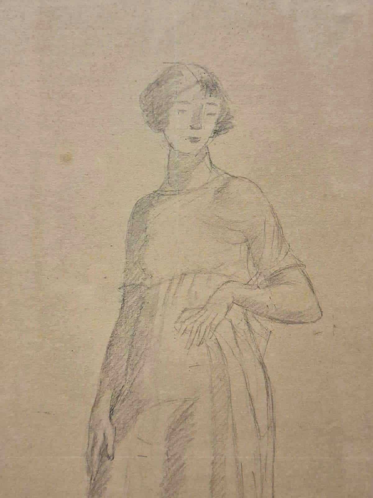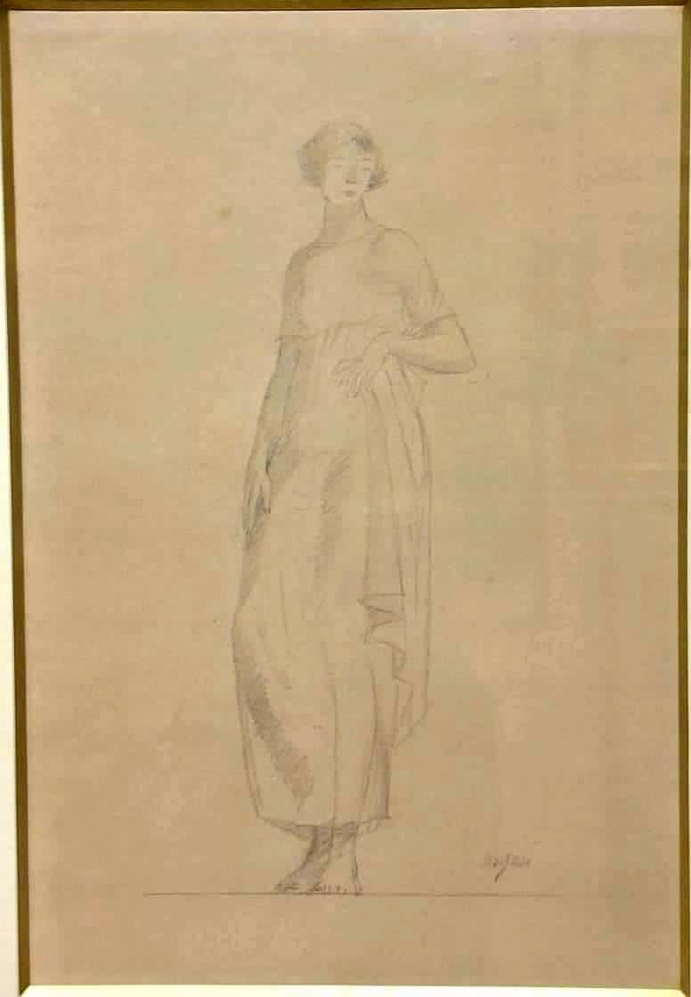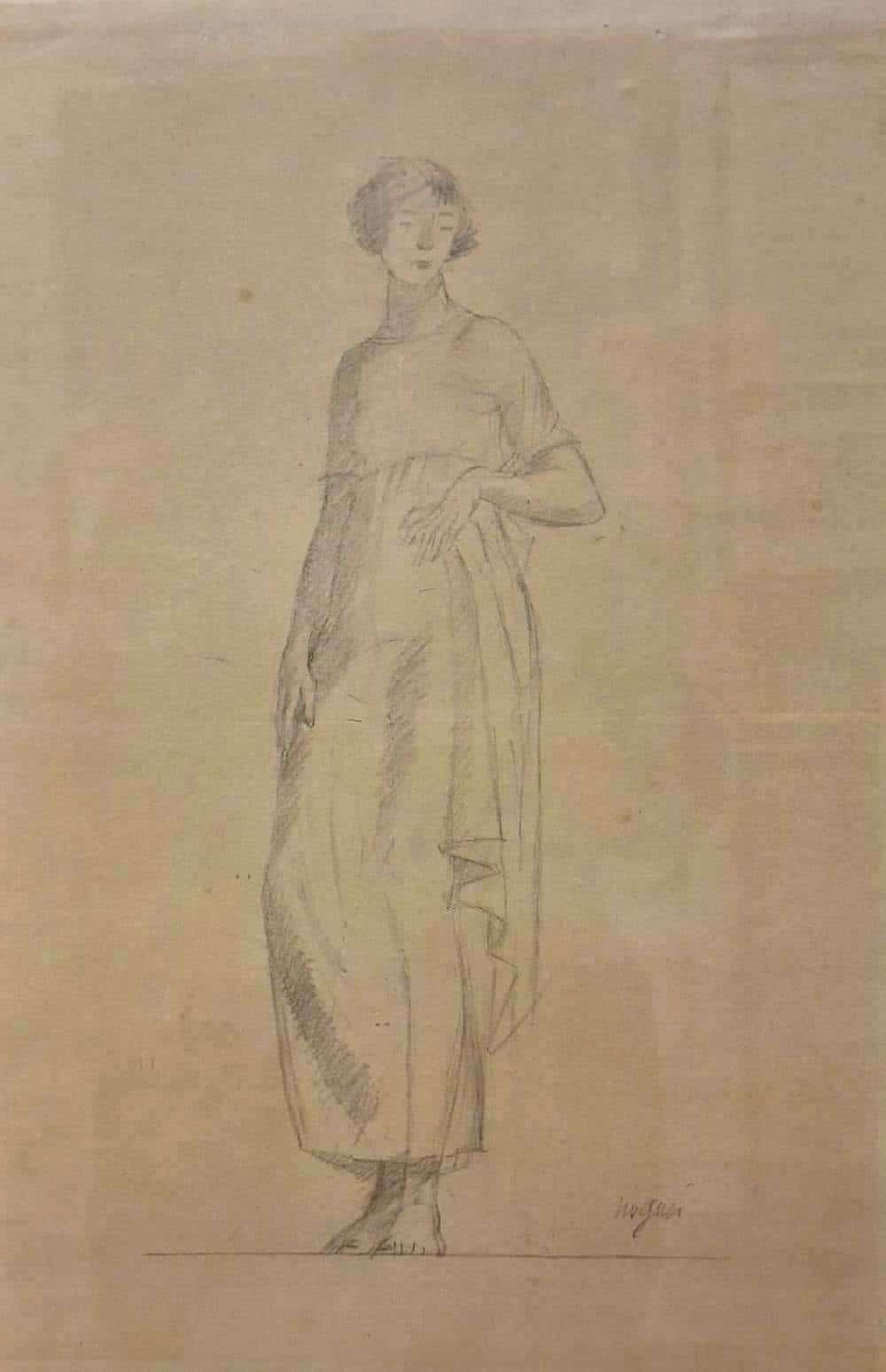 Dibuix de figura femenina, potser estudi per a una pintura mural. Potser es tracta d’un esbós per a la decoració del Saló Plandiura (al Carrer de la Ribera, 6 de Barcelona), pintat entre el 1917-1927. Aquest dibuix va aparèixer en el lot 893 a la subhasta Subarna de Barcelona el 4 de desembre de 2025.