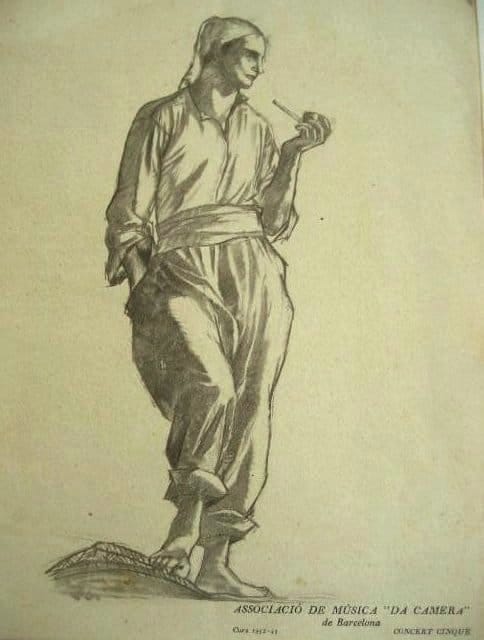 Per la temporada 1932-1933 Xavier Nogués realitzà diverses portades dels programes de mà dels concerts organitzats per l’Associació Música “da Càmera” de Barcelona celebrats al Palau de la Música catalana. Van ser impresos a l’Institut Grafic Oliva de Vilanova i la Geltrú, 1932. El programa del cinquè concert mostra un home amb barretina fumant una pipa i parteix del dibuix preparatori del mural decoratiu del despatx d’honor de l’alcalde a l’Ajuntament de Barcelona, conegut com “El Port”, prolongació del mural “El renaixement espiritual de Catalunya”.