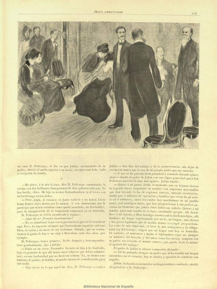 Segona de les tres il·lustracions d’estil plenament modernista per a il·lustrar un conte d’Artur Masriera: Luchas del dia. Al final del text s’indica que les il·lustracions son obra de Francisco Javier Nogués.