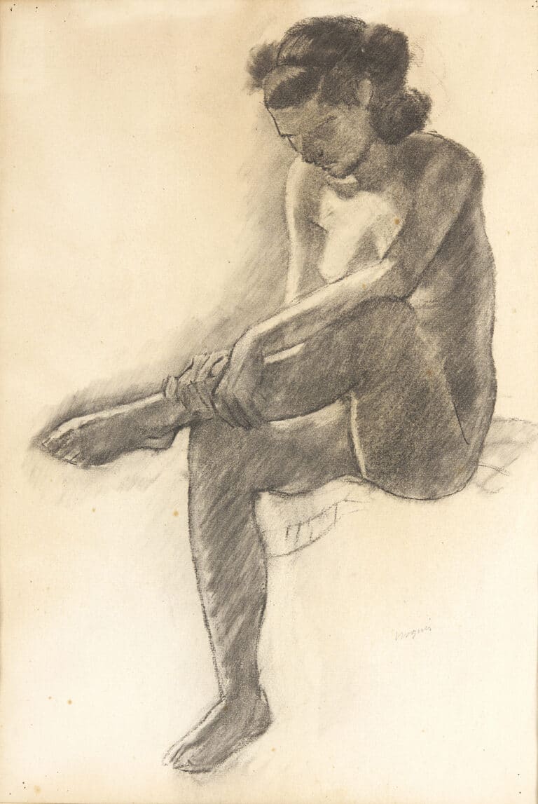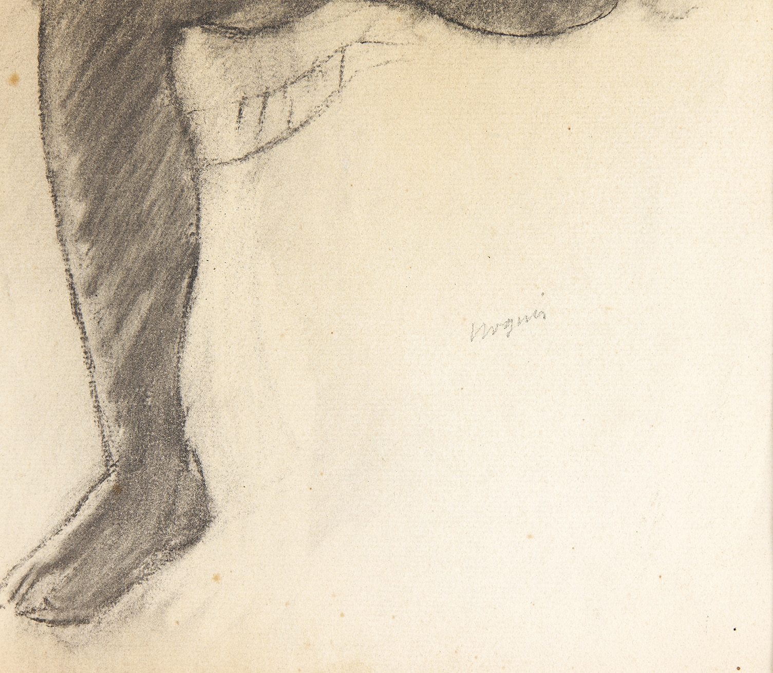 Apunt ràpid de nu amb dona asseguda. Al catàleg de Rafael Benet es descriu una obra amb idèntiques mides però sense imatge: “Desnudo de mujer sentada con los pies cruzados” (núm. 8, pàg. 80). Al catàleg de l’exposició de la Virreina també es descriu (fitxa 879, pàg. 68).